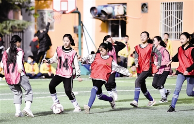 3月22日,学生放学后在进行足球训练。2020年底开始,宝鸡市在市区内部分中小学进行课后服务试点工作。每天下午4点半至6点,在校园内由老师为学生辅导作业,或让学生们自主选择阅读、体育、音乐、绘画、编程等丰富多样的活动。