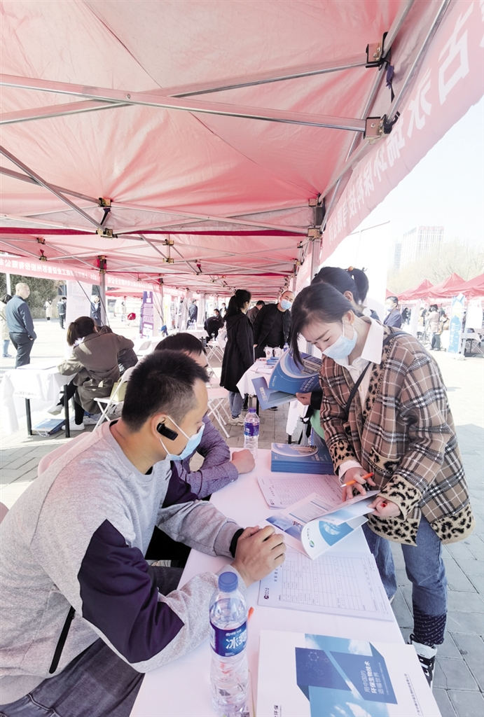 干了五六年财务工作的高秀丽也来到招聘会现场,想换一份新的工作。她说,工作多年积累了不少经验,这次希望能找到一家环境好、待遇高的企业。