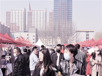 3月27日9时许,内蒙古展览馆北广场的招聘会现场已经人头攒动,求职者络绎不绝。有想换新工作的年轻男女,也有待业的宝妈,更多的则是刚毕业的大学生,他们从四面八方聚集到一起,就是为了能找到一份心仪的工作。