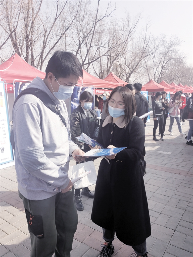 “你有能力,我有舞台”“你的加入将会为我们带来更多的精彩”“你有梦想,我有土壤,我们成就你”“逆袭吧朋友”“寻找与众不同的你,这里有您的一片天”……招聘会现场,各企业早早将海报和招聘展架摆放到醒目位置,并使用新颖独特宣传语吸引求职者。同时,招聘企业的工作人员走到人群中发放宣传页招贤纳士。