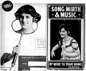 1895年世界上出现了第一款民用广播耳机,英国一家公司利用电话线将现场音乐表演和其他实况资讯转播到家庭耳机中,供用户在家中享受剧场节目的“现场直播”。这不仅是耳机第一次用于聆听音乐,也可以说是最早的有线广播系统的雏形。此时的耳机也从肩扛单耳式进化到了手持双耳式,样子看着像一副超大号的听诊器,使用者佩戴耳机后还需要手握长柄,把两个耳罩扶到耳朵边,否则很容易脱落。