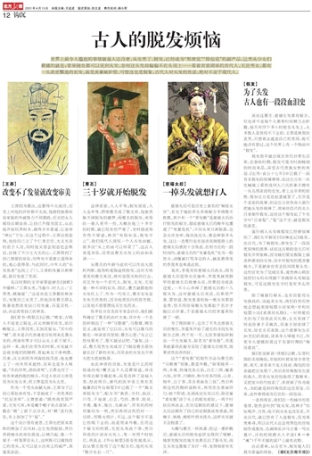 由此看来,从古至今,脱发是人们最为普遍的烦恼。(据《北京青年报》)
