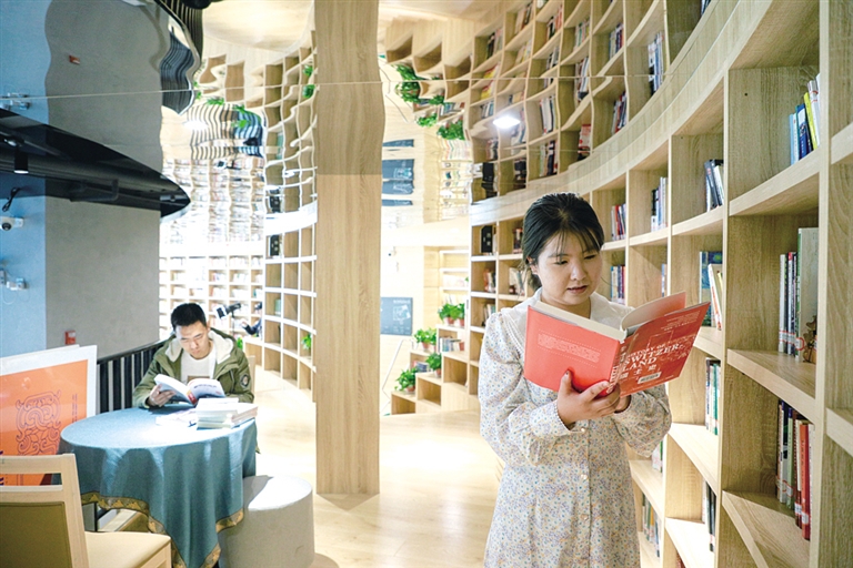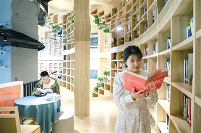 4月14日,市民在位于呼和浩特市体育场的鸿雁书房阅读书籍。该书房是呼和浩特市图书馆依托“鸿雁悦读”计划,旨在将中心馆的服务功能向全市辐射,让读者能够就近享受借阅服务而设立的综合性示范书房。该书房也是华北最大的城市书房,馆内容纳30000册图书,整间书房提供集学习交流、文化休闲、悦享数图等功能为一体的一站式服务。