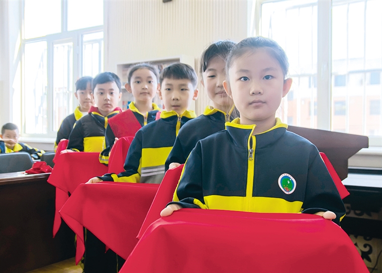 新城区关帝庙街小学大队辅导员徐文担任学校的少先队礼仪培训老师和比赛主评委。他给少先队员们耐心讲解了中国少年先锋队的性质、作风、队礼的规范行法、宣誓内容和正确的呼号标准内容等,还进行了关于少先队标志、意义以及红领巾佩戴方法的详细讲解,并给孩子们演示了敬队礼、佩戴红领巾。