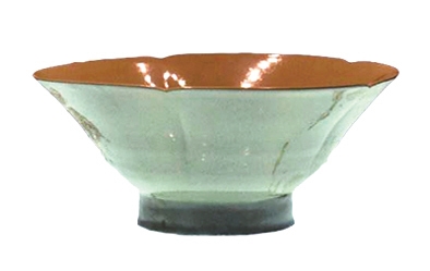 碗是唐代越窑青瓷非常重要的器形,碗口形状可分为荷叶、海棠和葵瓣形等,碗底则多见玉璧底、玉环底和圈足等形制。唐代青瓷碗一般通体施釉,包括足内外均施釉,釉层较厚,釉面匀净,一般无流釉现象,碗足上常留有数个泥点垫烧痕迹。考古中,唐长安城坊市遗址多有青瓷碗残器出土,今西北大学太白校区位置原属唐长安城太平坊,此处曾出土过底部为玉环形的唐代青瓷碗标本,据其使用痕迹看,应为茶具。唐代茶圣陆羽在《茶经》中极为推崇青瓷茶碗,认为“类玉”“似冰”的越窑青瓷碗与绿色茶汤相得益彰,故能达到“益茶”的功效。