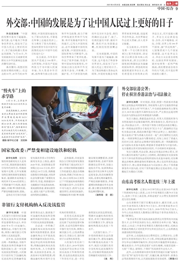 外交部:中国的发展是为了让中国人民过上更好的日子
