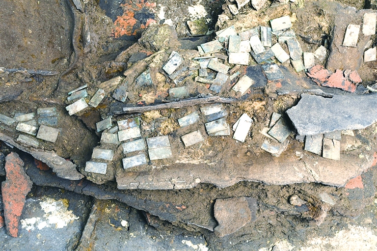 该遗址文化堆积总体顺着地下小山岗的坡势由西向东倾斜,堆积厚达2米多,分为12小层,发掘出土露天烧火坑、食物储藏坑、生活器具加工制作区等聚落遗迹。