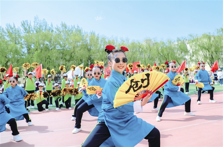 4月28日,呼和浩特市锡林南路小学“阳光体育 追梦少年”春季田径运动会拉开帷幕,各代表队喊着自己班级独有的口号,精神饱满地入场。与此同时,锡林南路小学分校也举办了“快乐运动逐梦想 阳光少年展风采”春季趣味运动会。两校运动会共设拔河、径赛、铅球、龟兔赛跑等十余项比赛项目。运动会将持续两天。 摄影/北方新报正北方网记者 牛天甲