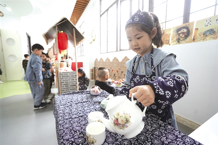 4月27日,小朋友在进行角色扮演游戏。近年来,南京市江宁区禄口街道曹村村从村庄环境、公共服务设施、特色产业项目、文化内涵挖掘等方面着手,大力实施乡村振兴战略,激发发展活力,建设“美丽、宜居、和谐”的特色田园乡村。