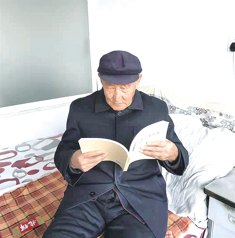 记者近日来到刘宝维家中,老人当时正聚精会神地坐在床上看书,手里捧着的是一本《中国共产党历史》。老人的房间堆放了许多书籍,《毛泽东选集》《习近平总书记系列重要讲话读本》《中国通史》《人民日报》等书籍、报刊摆放在案头。