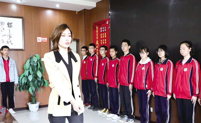 “站立的时候,头要正,颈要直,目光平视正前方,前脚脚后跟要紧贴后脚脚心,大家跟我一起做。”4月28日下午,呼和浩特市首届青少年礼仪大赛特聘礼仪导师、呼和浩特时尚学院超模导师温婷瑶为呼和浩特市第二十一中学的参赛选手们进行了第二场礼仪培训。