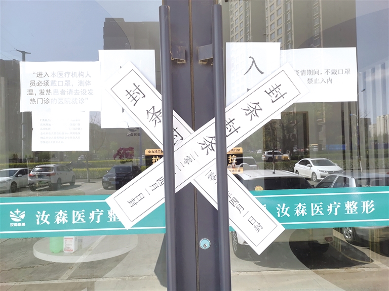 记者随后就此事来到汝森国际整形医院赛罕区汝森医疗美容门诊部进行采访,发现玻璃上贴有“因欠房租暂停营业”的字样,大门贴着封条,落款日期为4月1日。记者通过天眼查发现,汝森医疗目前依旧处于存续期间,法人为杜文兵。记者拨打了杜文兵的电话,始终无人接听,记者将采访提纲以短信的形式发给对方,也未收到回复。