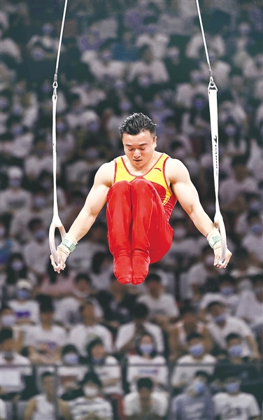 世锦赛吊环冠军、辽宁队“独苗”刘洋以难度分6.500分的高难度成套动作夺得男子吊环金牌,广西队兰星宇和江苏队尤浩分获银牌和铜牌。根据竞赛规程,刘洋的这一难度超过了2019年世界体操锦标赛男子吊环决赛的冠军难度分,因此刘洋又获得一枚“男子吊环世界最高难度”金牌。