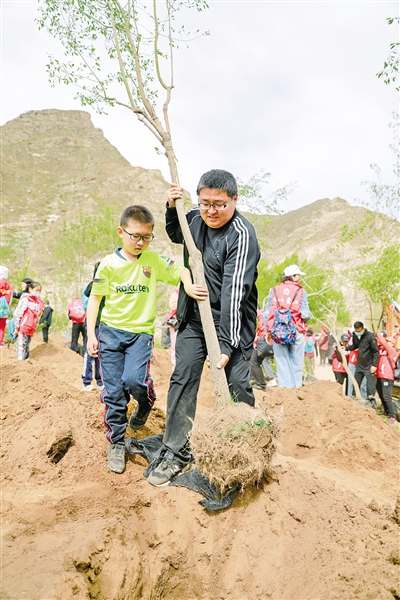 今年82岁的蒋华臣,在儿子的协助下,认认真真地种下一棵小树。老人扶着小树,用脚踩了踩土,又围着小树转了一圈,仔细查看树木是否正了。太阳下,老人的额头挂着些许汗珠,亮晶晶的。老人告诉记者,现在全民植树已经成为一种共识,北方新报多年来坚持组织义务植树活动,绿化大青山,美化首府,办了一件造福子孙后代的大好事,希望这个活动持续办下去。