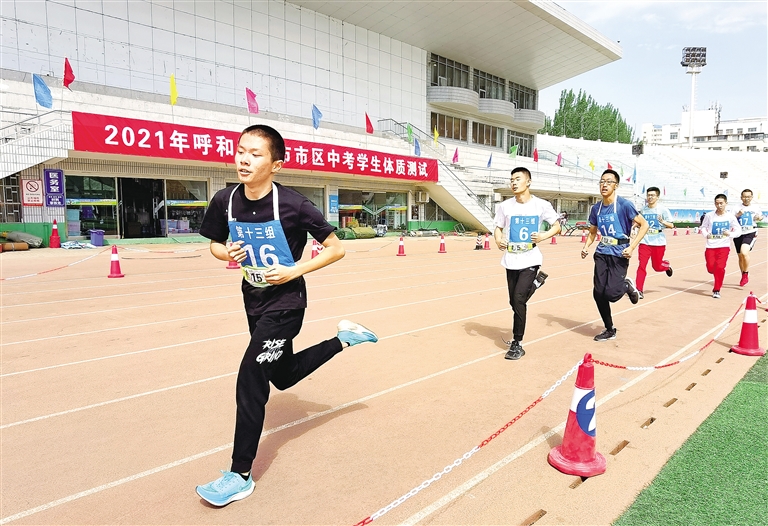 5月11日是呼和浩特市中考体测媒体开放日,在呼和浩特市人民体育场,来自内蒙古农业大学附属中学等学校的学生有序进行体质测试。据呼和浩特市招生考试管理中心主任徐东飞介绍,今年中考体测时间为5月6~26日,来自市四区68所学校的20202名学生在呼和浩特市人民体育场完成中考体质测试。测试项目为:男生1000米跑、立定跳远、坐位体前屈,女生800米跑、立定跳远、坐位体前屈。