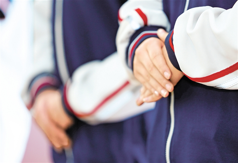 通过前期的班内选拔,参加比赛的选手们身材修长、仪态端庄、动作规范,按照动作标准逐一进行展示,表现出良好的精神风貌。初三11班的张伊童身高174厘米,这个高个子女生被安排第一个上台,紧张得直跺脚,不停默念自我介绍稿,与同班同学一起交流礼仪动作。等到上台时,张伊童却出奇的镇定,很好地完成了每一项比赛,3位评委均给她打出了9分的成绩。完成比赛后,张伊童告诉记者:“这周五就是中考体测,下个月就要举行中考了,在紧张复习之余,来参加这场比赛,我觉得能够帮助我们缓解考试带来的压力。”