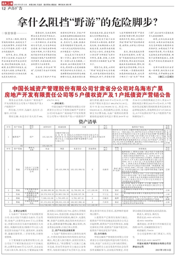 中国长城资产管理股份有限公司甘肃省分公司对乌海市广昊 房地产开发有限责任公司等5户债权资产及1户抵债资产营销公告