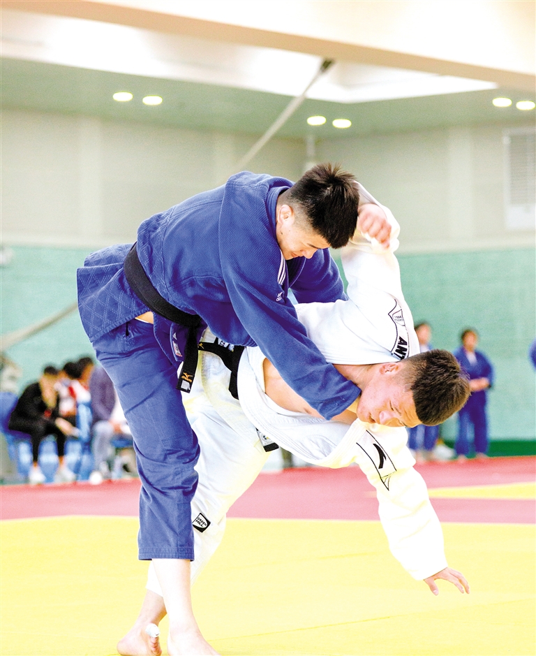5月13日,两名选手在比赛中使出浑身解数想要战胜对方。当日,由内蒙古自治区体育局、内蒙古自治区教育厅主办的2021年“体彩杯”全区青少年柔道锦标赛在呼和浩特收官。本次比赛为期4天,共有来自全区各盟市17支代表队的近600名选手争夺男女8个组别55个级别和两个甲组混合团体的金牌。