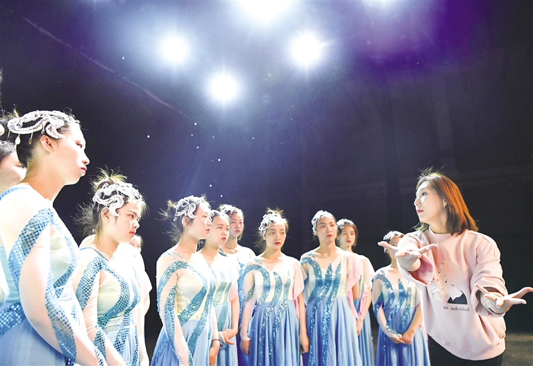 5月10日,舞蹈队员在和指导老师交流。这支特殊舞蹈队的队员全部是天津理工大学聋人工学院的听障学生,她们热爱舞蹈,在舞台上相识,每周都会定期参加排练。