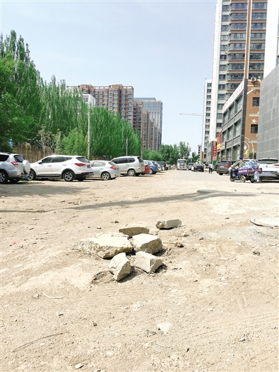5月12日上午,记者来到位于南二环的华盛嘉苑小区,在小区西侧有一条南北走向的土路长约300米,由南二环向北延伸至华盛嘉苑小区与尚东枫景小区交界处。土路路面坑洼不平,石子裸露,车辆驶过时摇摆不定,在部分坑洼路段还有积水。路况较差,过往的车辆和行人却不少,土路周边有便民市场、幼儿园,还有众多商铺及小区,土路上停满了机动车,车辆行驶时尘土飞扬。周边居民说,这条土路已经很多年了,一直没硬化,严重影响出行和周边环境。