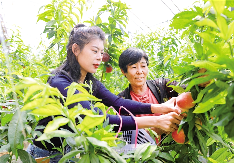 5月20日,首府市民在赛罕区根堡村一处采摘园内采摘蜜桃。只见采摘园内一排排桃树整齐划一,毛茸茸的蜜桃和色泽鲜亮的油桃已然成熟,个大饱满,挂在树上惹人垂涎。不少市民慕名前来采摘,游览田园风光,享受农家乐趣。 摄影/北方新报正北方网记者 牛天甲