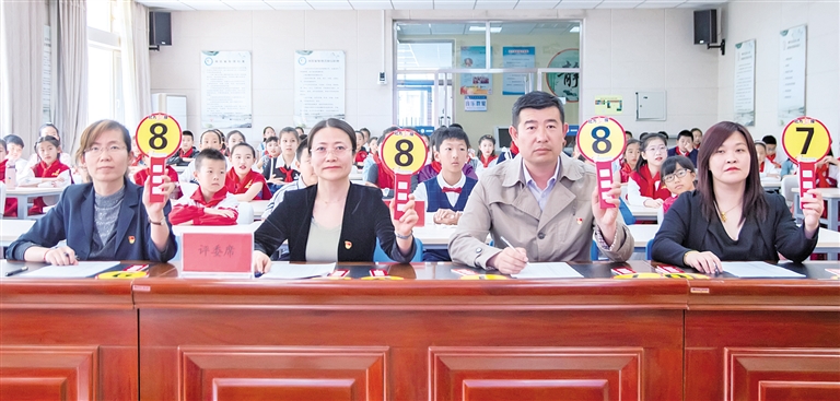 参赛选手们穿着色彩明艳的服装走进学校,部分选手还化了精致的舞台妆,要把自己最美的一面展现给评委。进入赛场,4名评委分别是巨华小学校长杨美兰、副校长陈卫东、德育主任霍燕、大队辅导员赵鹏。任航努力说服自己不要紧张,按部就班完成了演练已久的3个项目,评委举起打分牌:10分、10分、10分、10分,台下的同学发出阵阵惊叹。