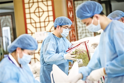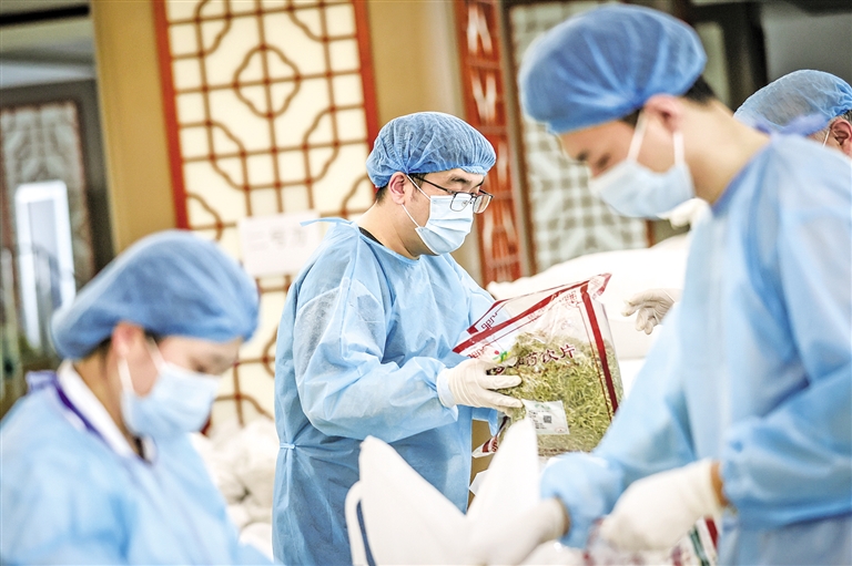 5月23日,医生在营口市中西医结合医院进行调剂工作。疫情发生后,营口市医护人员加班加点熬制中医药汤剂和代茶饮,全部免费提供给鲅鱼圈集中隔离人员和重点管控小区人员。