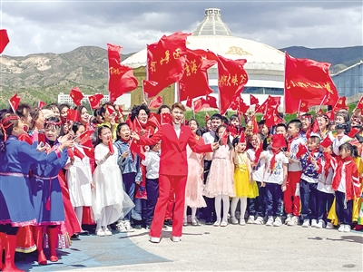 5月27日,我区青年歌手乌兰图雅献上精彩“快闪”《唱支山歌给党听》。当日,上千名游客在美丽的敕勒川草原,参加“惠民全域游”活动,欣赏精彩的惠民演出。活动现场,呼和浩特市玉泉区乌兰牧骑、社区乌兰牧骑献上舞蹈《盛世欢歌》《守望相助》《祝福》以及马头琴齐奏《万马奔腾》、器乐合奏《欢腾的敕勒川》等丰富多彩的节目。今年以来,呼和浩特市已经开展了“爱上敕勒川 惠民一日游”“爱上敕勒川 青城好花季”等40多场文旅活动。 摄影/北方新报正北方网记者 牛天甲