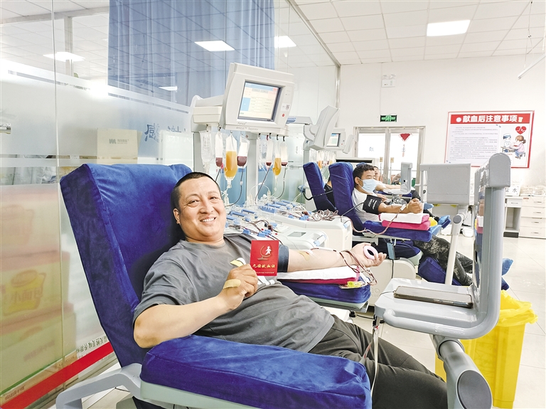 5月27日,北方新报公益联盟志愿服务队队长柳军在内蒙古自治区血液中心捐献血小板。柳军是血液中心的常客,从2010年开始无偿献血,最初每半年捐一次全血,近年来听说捐献血小板对危重患者帮助更大,柳军每半个月便来捐献一次血小板。截至当天,柳军已献血98次,献血量达到38300毫升。2015年,柳军荣获“全国献血铜奖”;2019年获得“星级志愿者”称号;2020年获得全国献血金奖。“ 自己的血液能用来救人一命,这让我很有成就感。”手捧献血证,柳军开心地告诉记者。