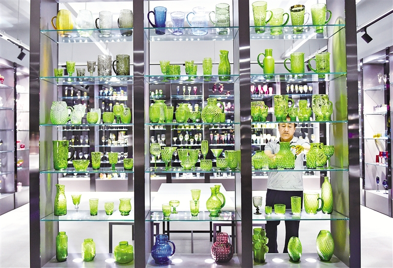5月26日,工人整理制作好的玻璃器皿。山西祁县是我国著名的玻璃器皿生产和出口基地,被称为“中国玻璃器皿之都”。这个拥有27万人的县城所生产的人工吹制玻璃器皿占全国总产量的45%,出口量占全国50%以上。在祁县玻璃器皿80多个出口国中,“一带一路”沿线国占到了40多个。