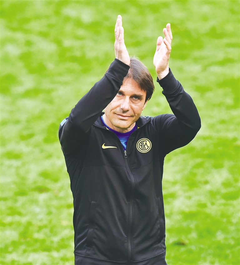 孔蒂在2019年夏天接替斯帕莱蒂,成为“蓝黑军团”新任主帅。在刚刚结束的2020~2021赛季,孔蒂率领球队夺得了自2010年以来的首个意甲冠军。