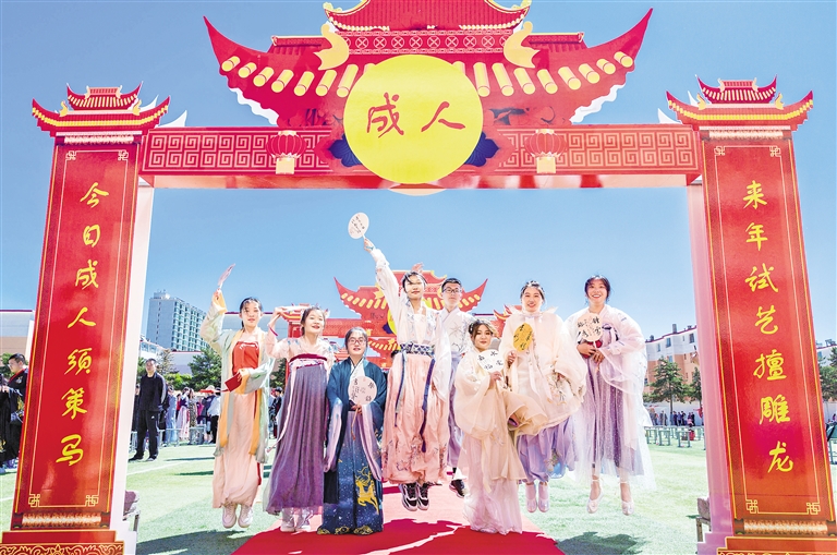 5月30日,呼和浩特市第三十八中学举行汉服成人礼,该校300多名高二年级学生身着汉服,在父母和师长的陪伴下,举行传统文化成人仪式。学校希望通过笄礼冠礼、礼拜父母师长、迈过成人门、赠送宪法等形式,引导同学们强化成人意识、培育责任担当。