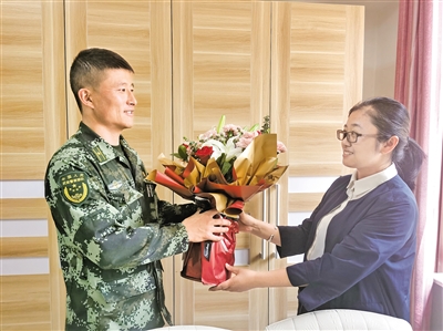 “520”前夕,在武警部队内蒙古总队包头支队机动大队的公寓楼,桑宏宇捧着一束鲜花,站在门口迎接下班回家的妻子,并深情地对妻子说:“媳妇,这么多年来为了我、为了家、为了孩子,你辛苦了!在今后的日子里,我会抽出更多的时间陪伴你和孩子。”