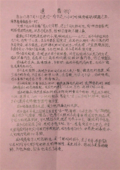虽然手术很成功,但是王淑娟住院期间意识仍然有些模糊,她对自己的术后身体恢复做了最坏的打算,所以在2017年10月24日偷偷写下了一封遗书。