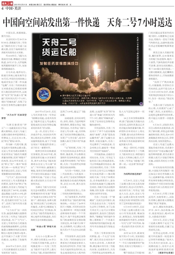 中国向空间站发出第一件快递 天舟二号7小时送达
