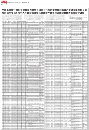 中国工商银行股份有限公司内蒙古自治区分行与内蒙古蒙利源资产管理有限责任公司 对闫建华等625笔个人不良贷款证券化受托资产债权转让通知暨债务催收联合公告