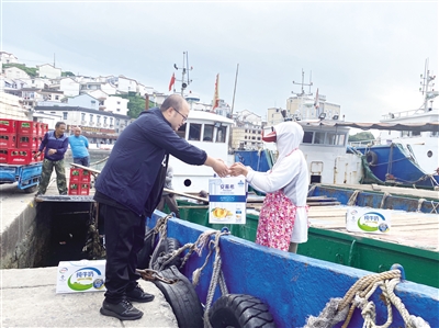 我们此行的向导——伊利液奶浙沪营销总部宁波区域营销代表金建兵,与我们在嵊泗岛会合。2018年,金建兵开始负责嵊泗岛及附近几个住人的小岛的销售工作。此次嵊山岛之行,也是他一次再平常不过的拜访门店之行。