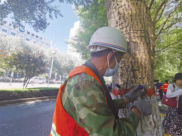 据了解,此次给树木用药工作是从6月12日开始,月底结束,主要是阿尔丁南大街、钢铁大街、建设路,全线6500多棵行道树需要注射飞絮抑制剂,药剂名为飞絮竞。注射的药液需要一两个月吸收时间,工作人员提醒市民看到树木的小瓶子切勿用手触摸。
