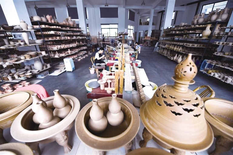 6月17日,工作人员在制作越窑青瓷。浙江省慈溪上林湖是唐宋时期我国越窑青瓷中心产区和秘色瓷的主要产地。近年来,慈溪市建立上林湖青瓷文化传承园,启动“瓷艺大师集聚计划”,不断壮大青瓷文化人才队伍,努力扩大产业规模,优化产业结构,积极推动现代青瓷产业发展。 摄影/新华社记者 徐 昱