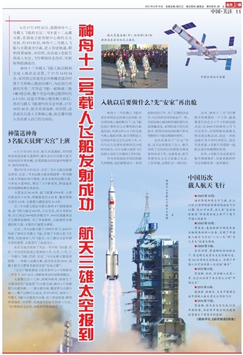 神舟十二号载人飞船发射成功 航天三雄太空报到