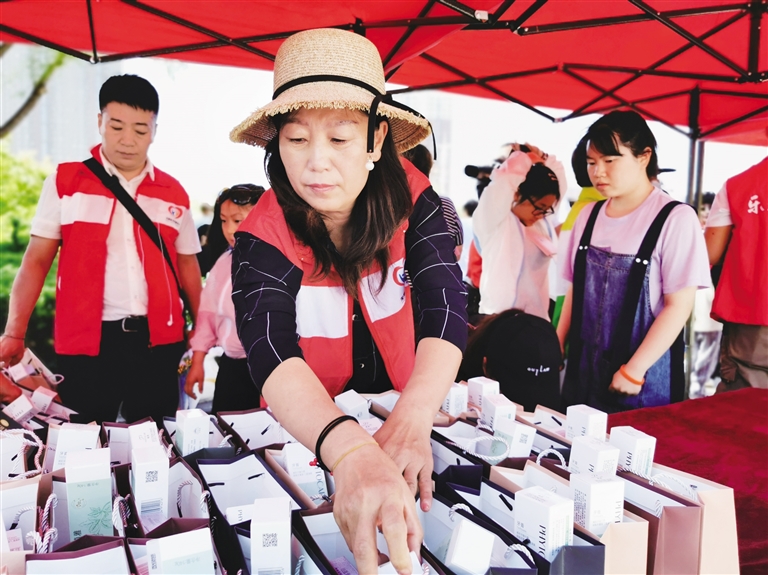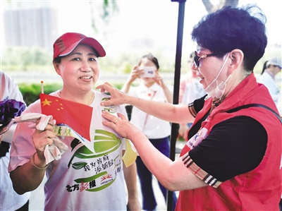 活动的顺利举办,离不开志愿者的辛勤付出。活动现场,身着红色马甲的志愿者们穿梭于起终点、打卡点,虽然头顶烈日,汗水浸湿了衣衫,但他们仍然尽职尽责,认真工作。当天,为确保活动安全有序进行,无限极(中国)有限公司内蒙古分公司的10多名志愿者在现场承担了人员签到、T恤发放、安全提示、打卡通关、礼品分发等工作。