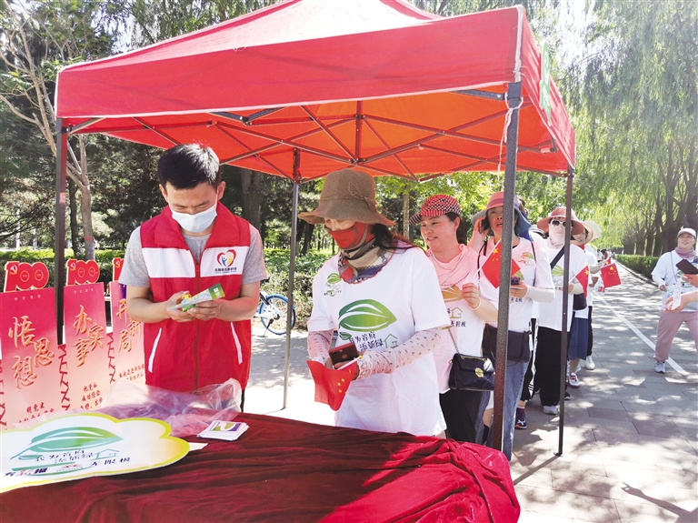 健步走沿线,特别设立了打卡点,为活动增添了趣味性。参与者要在3个打卡点分别进行打卡,第一个打卡点,参与者可以获得一个印有“我为首府添新绿”的贴纸,并在纪念券上印一个太阳形状的印花;第二个打卡点,参与者可获得印有北方新报LOGO的贴纸,并印上树叶形的印花;在第三个打卡点,参与者需要拍摄一张自己参加活动的照片并发朋友圈,可获得贴纸和印花。发送朋友圈旨在表现大家积极健康的生活状态,宣传绿色出行,倡导低碳生活。参与者王松告诉记者,行进过程中,每隔一段距离,就会出现一个打卡点,打上印花,贴上贴纸,整个过程趣味满满,这样的活动值得称赞。