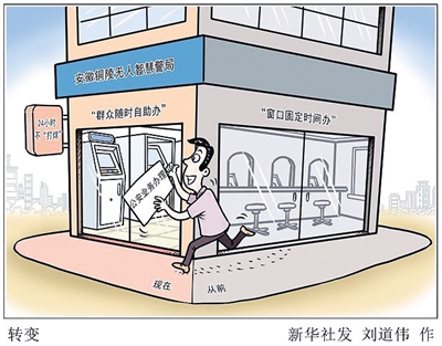 据铜陵市公安局行政许可服务科科长朱启赟介绍,无人智慧警局依托人工智能、大数据、云计算等新技术,打破时间、地域界限,实现公安业务由“窗口固定时间办”转变为“群众随时自助办”,为群众办事开启“加速度”“随时办”。