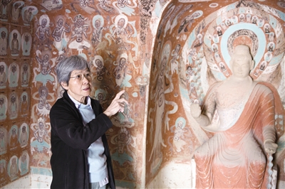 她是敦煌研究院名誉院长樊锦诗。1938年,祖籍杭州的樊锦诗出生在北京,自1963年大学毕业后,她便开始了与莫高窟长达半个多世纪的相守。在她和同事的努力下,莫高窟在1987年成为中国首批进入世界文化遗产名录的遗产地,并逐步成为世界文化遗产保护和利用的全球典范。