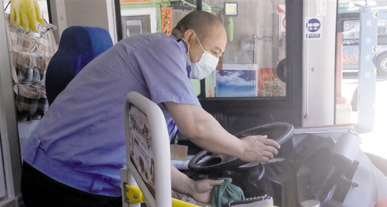 1977年出生的王强,是公交一公司一环2号线的司机,虽然自称“一枚普通的油腻中年大叔”,但部队出身的他极爱干净,每天对自己驾驶的公交车擦洗收拾两次。记者走进车厢,只见车厢内仿佛被水洗过一样洁净,每一块玻璃都锃光瓦亮。