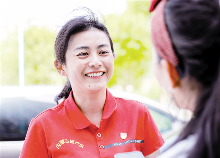 崔瑞清是内蒙古第四医院主任护师,内蒙古首批驰援湖北医疗队队员。站在领奖台上的她从容淡定,台下接受采访时,却几度哽咽说不出话来。