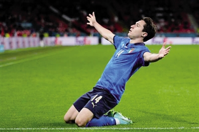 本届欧锦赛1/8决赛,代表意大利队出战的小基耶萨在下半场比赛陷入僵局时临危受命,他没有辜负主教练曼奇尼的期待,用在加时赛中的一记左脚抽射破门,帮助“蓝衣军团”2:1击败奥地利队,强势挺进八强。