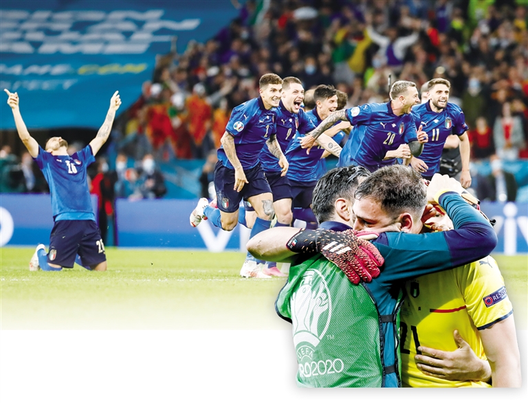 意大利自己的足球,就是更有效的足球。7日凌晨,在把控球率让出的同时,小基耶萨用一脚禁区外的弧线兜射,助意大利领先,但恩里克的斗牛士用一次精彩的配合,由替补出场的莫拉塔禁区内射入单刀。两队在加时赛均未创造机会,进入点球决胜。