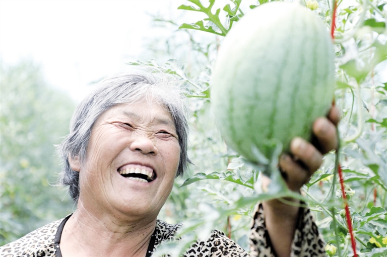 在林西县大营子乡和平村禾旺扶贫产业园里,种瓜农民杜国凤领着记者来到自家种植辣椒的大棚前,笑盈盈地说:“我家一共有26个常温冷棚,种植辣椒、西瓜、菜花,每个大棚平均年收入1万元,足够全家人过好生活。”她说。