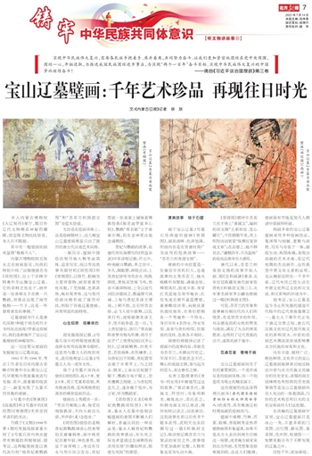 绚丽多姿的宝山辽墓壁画采用多种绘画技法,集浑厚与细腻、素雅与浓艳、写实与夸张于一体,描绘生动、构图准确,表现出高超的艺术水准,是辽代初期的杰出画作。这些典型中原文化元素的运用,也从侧面说明在一千多年前,辽代先民已经生活在中原文化和辽文化相互交流、相互影响的环境当中。